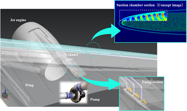 HLFC technology has been recognized as a promising solution for drag reduction in aircraft since the 1930s. However, its implementation has faced significant challenges, particularly in developing compact, lightweight, and reliable vacuum pumps capable of handling low-density air at cruising altitudes (approximately 10,000). IHI's newly developed vacuum pump overcomes these hurdles through the following technological innovations: