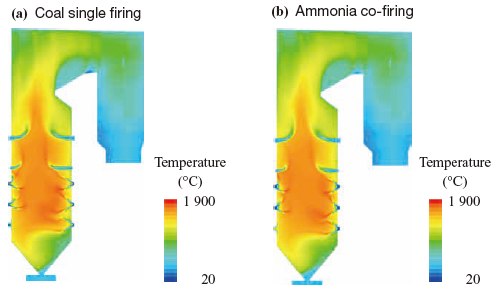 Ammonia has a lower burning rate and flame temperature than other conventional fuels, such as methane. Also, there is a need to reduce the amount of nitrogen oxide (NOx) generated by the nitrogen components in the fuel. Reliable ignition and stable combustion are important, but the combustion conditions for achieving them have a trade-off relationship with low NOx emissions. In combustion technology development, it is important to strike a good balance between the two.