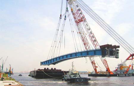 - Fitting warped girders -The floating crane method is a major large-block erection method. When a large block, if long or deformed, is lifted, the girder will cause substantial deformation from the initial lifting until the end of erection another deformation may occur from temperature changes. Simulating these deformations or stress states of the girder in advance will help to ensure safe and accurate erection.