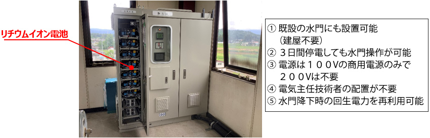 ※水門用蓄電バックアップシステムの開発は,国立研究開発法人土木研究所との共同研究「停電時にも水門開閉操作を実現できるシステム、及びそのシステムを既設水門に付加する改造技術の開発」において実施したものです。