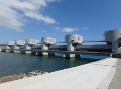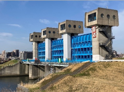 河川や水路を横断し設けられる水門や樋門は,閉めきることにより洪水,高潮,津波といった自然災害から生活を守る堤防としての役割があります。また,水門において船舶を安全に通航させるための設備を閘門と言います。