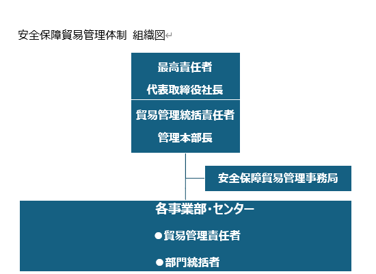 当社は、安全保障貿易管理基本規程を制定して、社長をトップとする管理体制を構築し、各国の輸出規制の動向を踏まえた適正な輸出管理を実施し、事業を遂行しています。