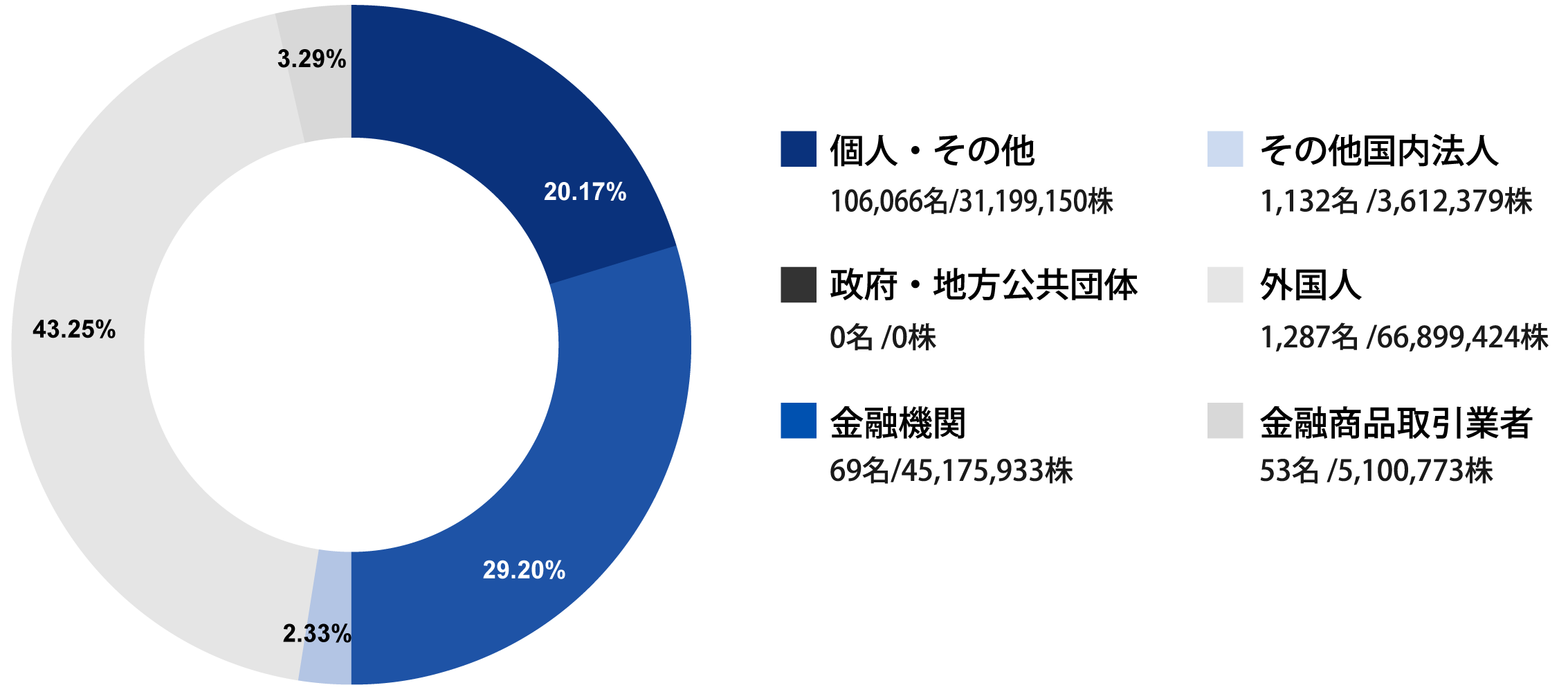 - 数値は表示単位未満を切捨てて表示しているため、株主構成の合計が100%にならない場合があります。