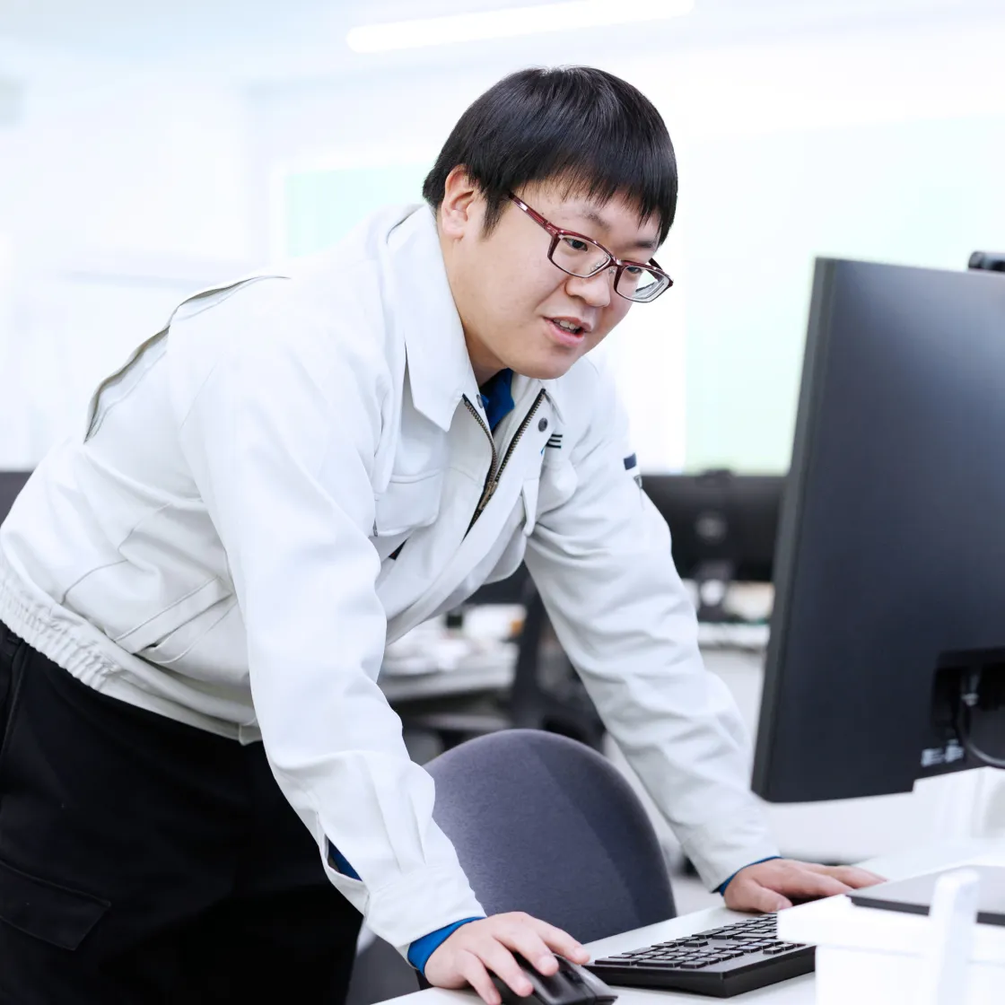現在は、技術部として、親会社であるIAの生産技術の部署に派遣、表面処理や塗装工程を担当しています。主な業務は、製品のデータ収集、不具合の原因調査、そして工程改善の実行です。具体的には、作業手順書の変更、設備の治具やシステムの改修、塗装ロボットのティーチング修正など、多岐にわたります。