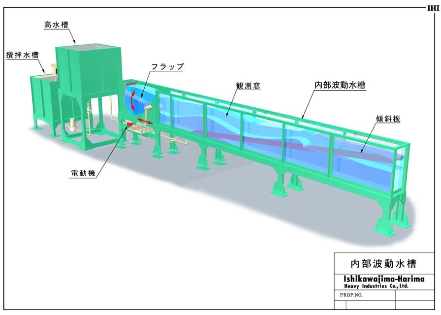 攪拌水槽で濃度調整された塩水は高水槽に送られ、高水槽から静かに内部波動水槽に注入されます。
