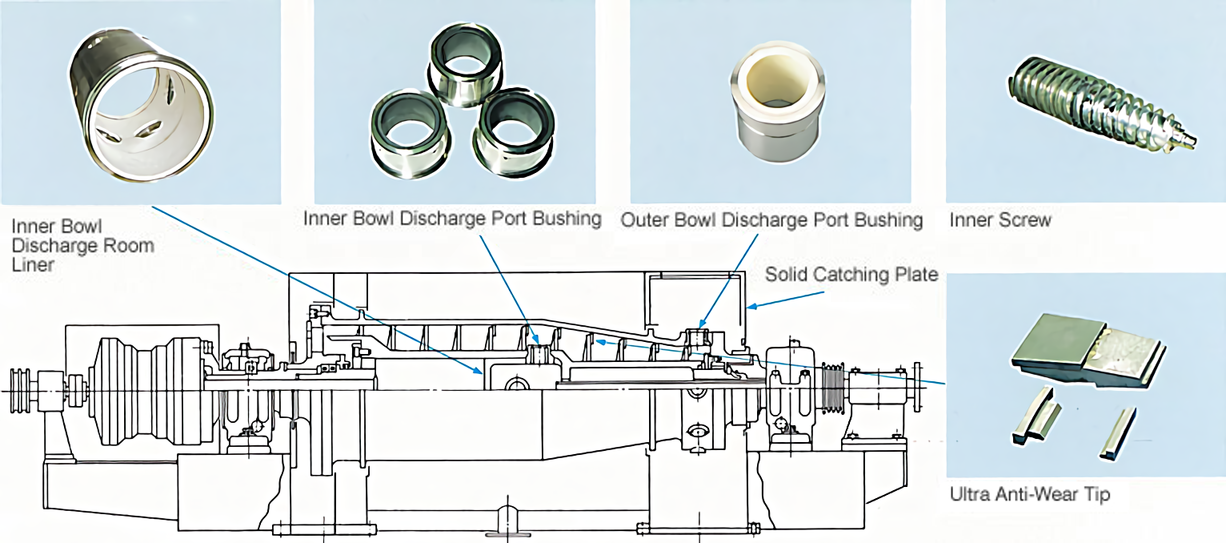 Treatment of muddy and turbid waters requires considerable wear resistance. The MW series features screws made from wear-resistant materials and ceramic liners for the outer bowl to maximize wear resistance. It is a heavy-duty decanter that can withstand tough operating conditions.