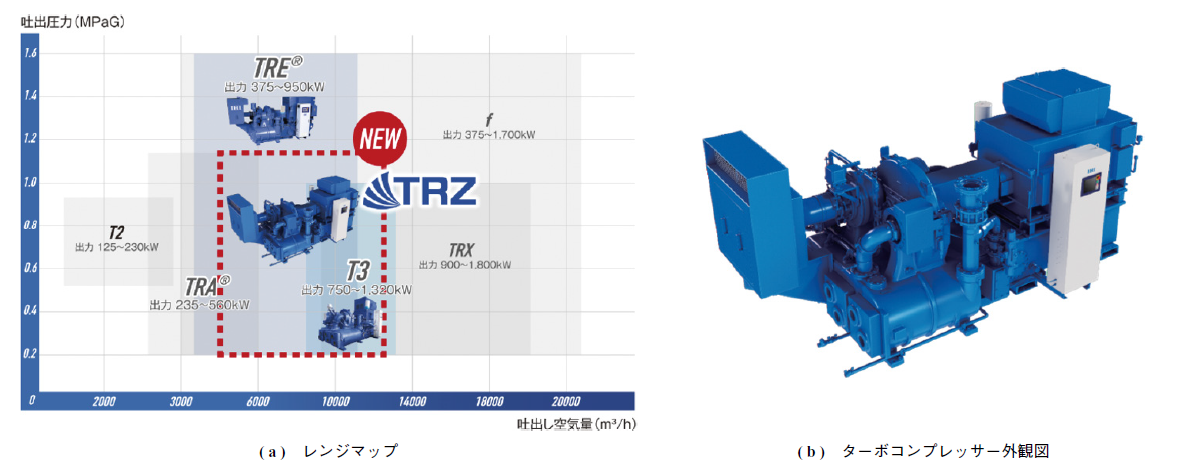 こうした背景を受け,高効率かつワイドレンジ化を実現した新型汎用ターボコンプレッサー「TRZ 型ターボコンプレッサー」を2025 年5 月26 日にリリースした.本稿では,TRZ 型ターボコンプレッサーおよびその開発内容について紹介する.
