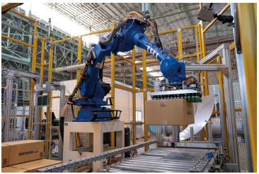 ロボットとの組み合わせで物流倉庫の積み付け作業を自動化